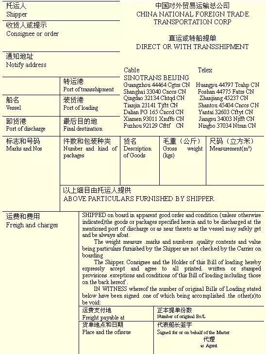 The third is the bill of lading of instructions, that is, the bill of lading for the delivery of goods according to the instructions of the instructor stated in the bill of lading。It is a bill of lading commonly used in current international trade。